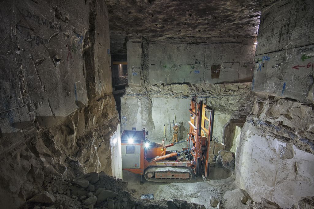Die Kettensäge Modell GU50-R-SC/T ist eine kompakte Version für den Tunnelaushub. Durch Einstellen der Frästiefe führt die Maschine automatisch senkrechte und waagerechte Schnitte gegen die Tunnelvorderseite aus.