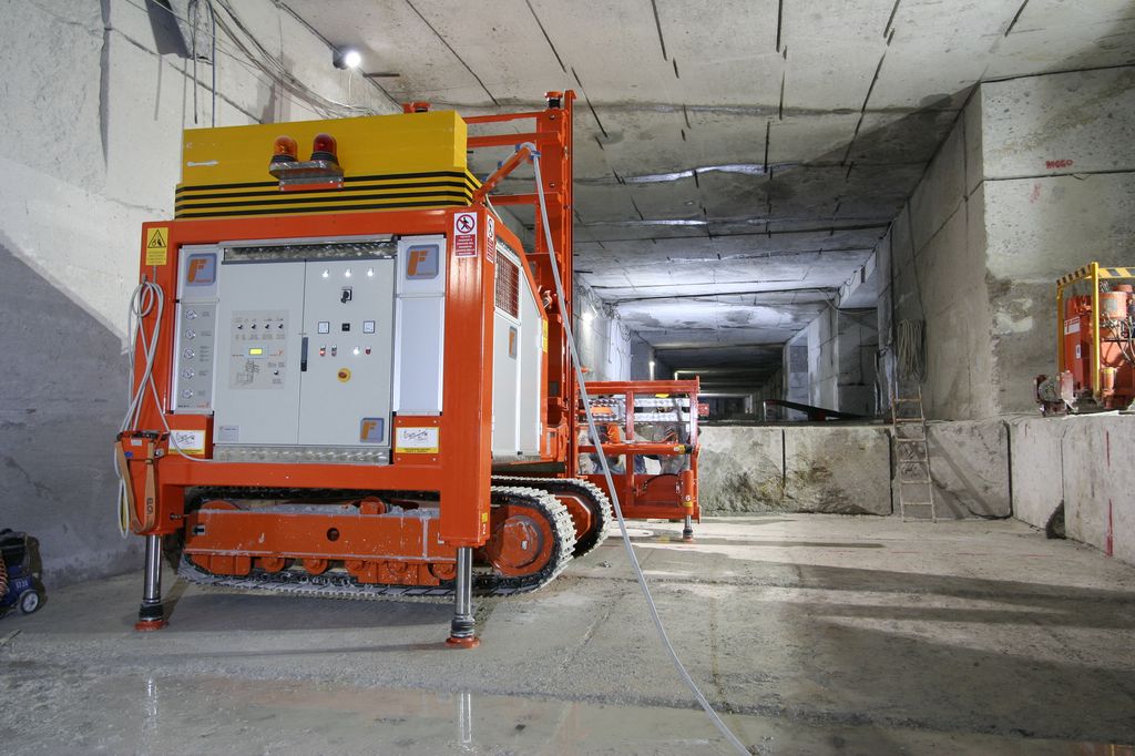 Chain Saw Model GU70RXC is the most popular machine in the world for opening up and exploring a tunnel cave. Thanks to a lanyard positioned on the front frame, the track carrying the arm can rotate by 360 ° to allow vertical and horizontal cuts at the tunnel face.